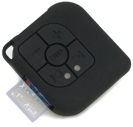 Правда вам сразу же придется раскошелиться на SD карту (максимальная ёмкость которая поддерживается плеером — 1Гб), наушники и батарейку ААА, от которой новинка от Evergreen может работать до 5 часов. Размеры плеера таковы — 58×60×13 мм, вес без батарейки — 30 грамм.