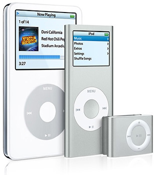 Компания Apple объявила об обновлении популярных плееров серии iPod. Изменения коснулись всех трех моделей — Apple iPod, Apple iPod nano и Apple shuffle. Новый iPod оснащен на 60% более ярким, чем предыдущая модель 2,5″ цветным экраном и жестким диском ёмкостью 30 или 80 Гб. Технология автоматической синхронизации Auto-Sync сама загружает музыку, подкасты, фотографии, аудиокниги, фильмы, музыкальные клипы и популярные ТВ шоу, а также обновляет устройство при подключении к компьютеру Mac или Windows. Специально для пятого поколения iPod разработан целый ряд видеоигр. Доступны два вариантра расцветки корпуса — черный или белый.