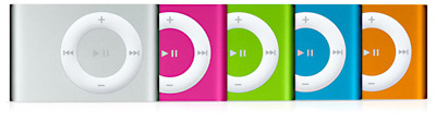 Apple раскрасил миниатюрный MP3-плеер iPod shuffle в новые цвета. В дополнение к уже сужествующему белому добавлены жизнеутверждающие розовый, салатовый, бирюзовый и оранжевый. Плеер, который в прошлом году приобрел вид прищепки и возможность ношения, к примеру, на одежде или ремне, функционально не изменился. Те же 512Мб встроенной флэш-памяти для размещения около 240 музыкальных композиций. Плеер миниатюрен, но при этом полной зарядки батареи должно хватить на 12 часов.
