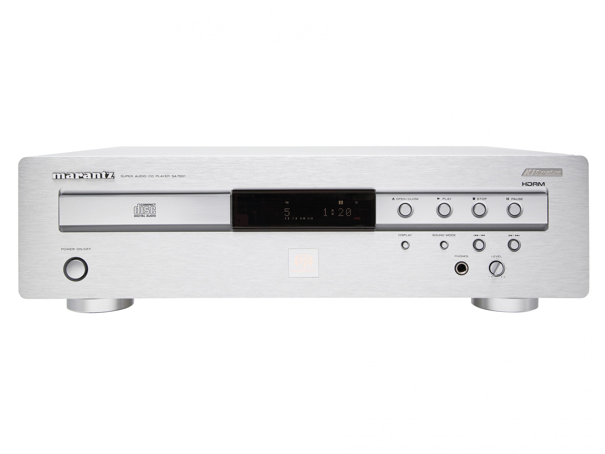 В аудиотракте Marantz SA7001 установлен ЦАП CS4397 от Cirrus Logic. Соотношение сигнал/шум для SACD/CD записей составляет 112/100 дБ соответственно, коэффициент гармонических искажений 0.002%. Габариты проигрывателя составляют 440 x 126 x 335 мм, масса 6.3 кг.