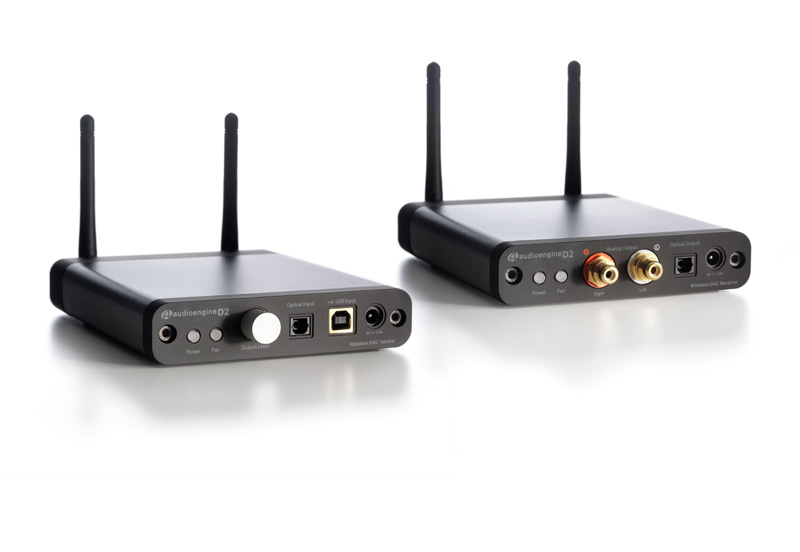Audioengine D2 — решение иного уровня, рассчитанное на более требовательных поклонников цифрового аудио. Это фактически три устройства, объединённые в едином корпусе. Это, во-первых, беспроводной USB-ЦАП (начинка его — высококлассный чип Burr-Brown PCM1792, так же работающий с теми же 24бит/192кГц сигналами), во-вторых, беспроводной USB-в-SPDIF конвертор, и в-третьих (но  не в последнюю очередь), беспроводной транслятор PCM-в-Stereo.