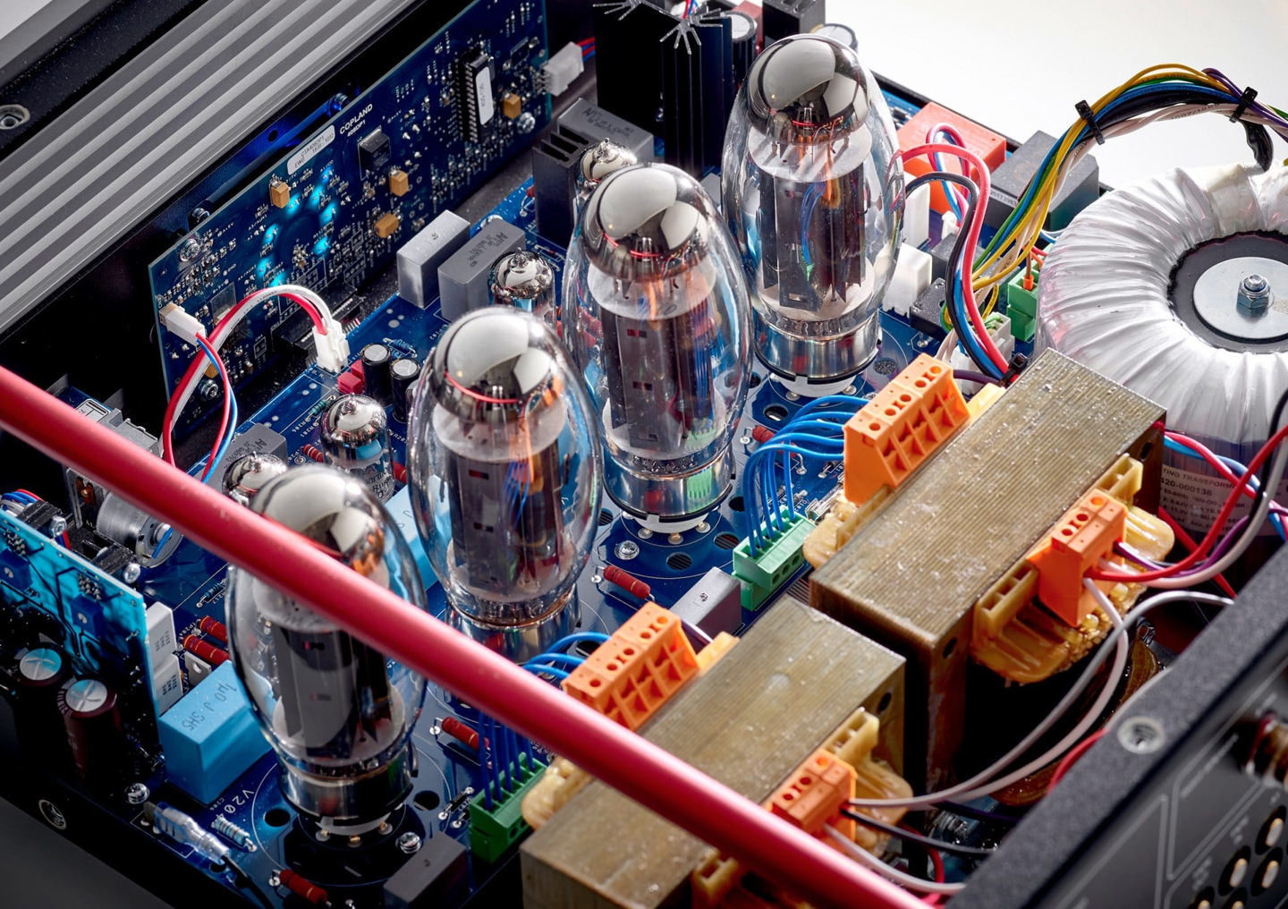 В последние годы прогресс в индустрии звуковоспроизведения позволил найти массу решений для оптимизации усилительных схем. Благодаря новым компонентам и технологиям, которые не были доступны ещё пару десятков лет назад. Но скандинавы решили пойти по проторенной дорожке — усилитель построен MOSFET-транзисторах и на четырёх лампах KT150, и двух парах 12BH7 и 6072A/12AY7. Несмотря на то, что подключение и настройка ламп в усилителе задача куда проще, чем решение задач по сопромату, производитель по традиции спрятал их в корпус.